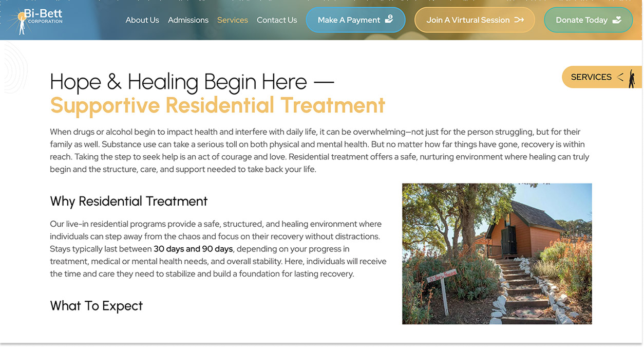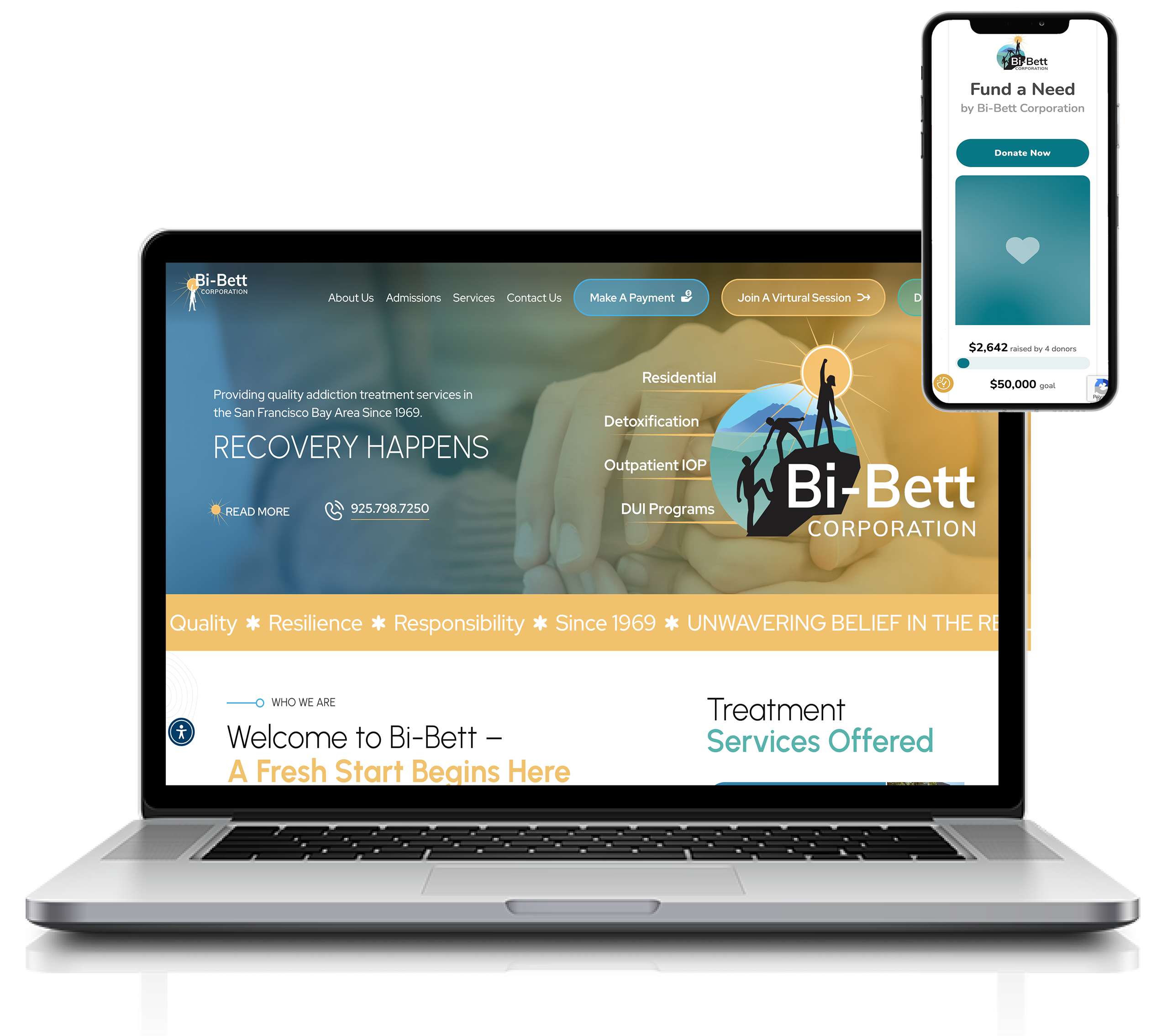 Bi-Bett Corp. is a long-established nonprofit delivering essential addiction treatment and recovery services throughout Northern California. Having initially partnered with 360 Web Designs back in 2020, they returned to us for a complete website redesign with a fresh look and new features for their users. They needed a modernized web experience with simplified navigation, clearer content, and a more intuitive flow for individuals seeking help and for people looking to support the cause.